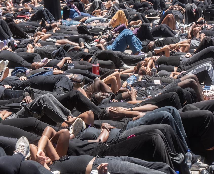 More than a thousand students and staff lay down for 15 minutes in protest against Gender-Based Violence And Femicide (GBVF) at University Of Cape Town on 21st November 2025 in Cape Town, South Africa. It is reported that South African women’s rights groups are calling for nationwide protests to demand that Gender-Based Violence (GBV) be declared a national disaster.